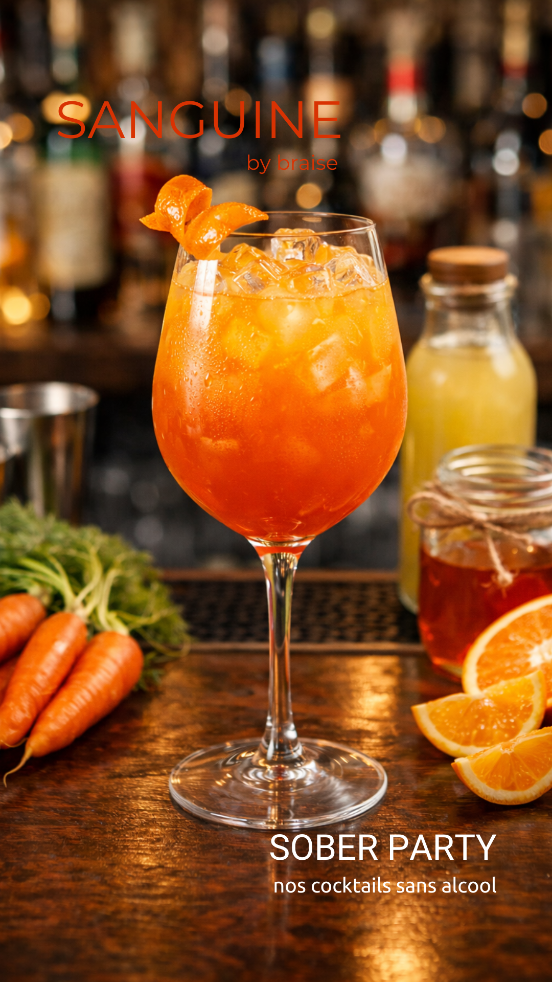 Jus d'ananas, citron, carottes fraîches, sirop d'oranges sanguines Bio maison